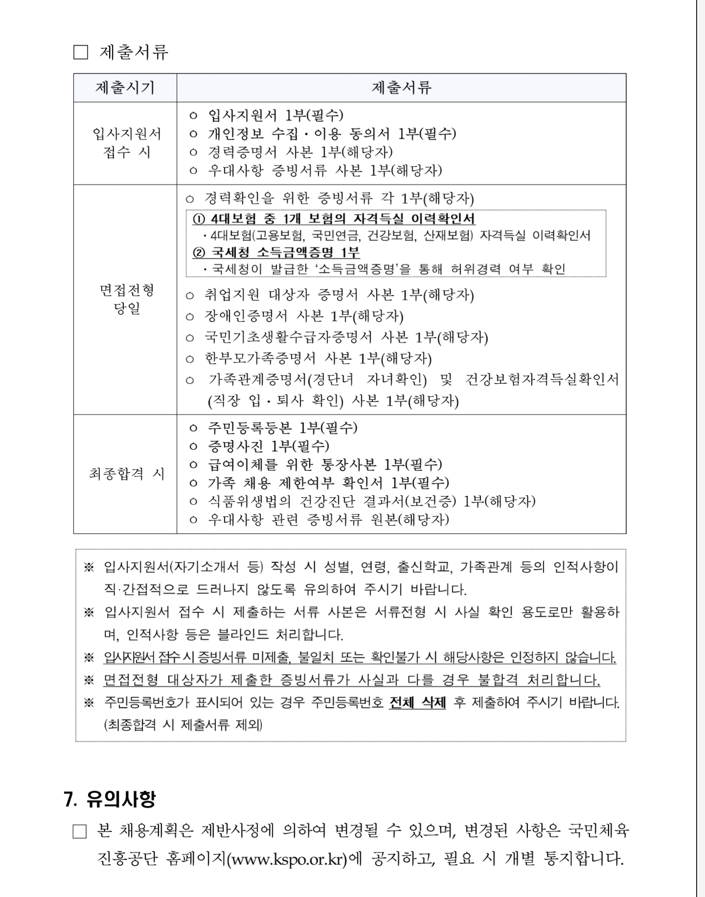 6. 입사지원서 접수 및 제출서류 안내: 공고문 참조