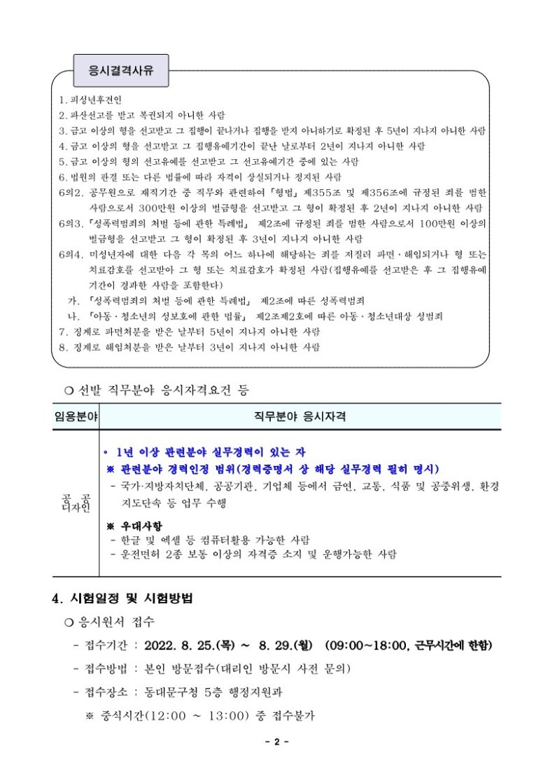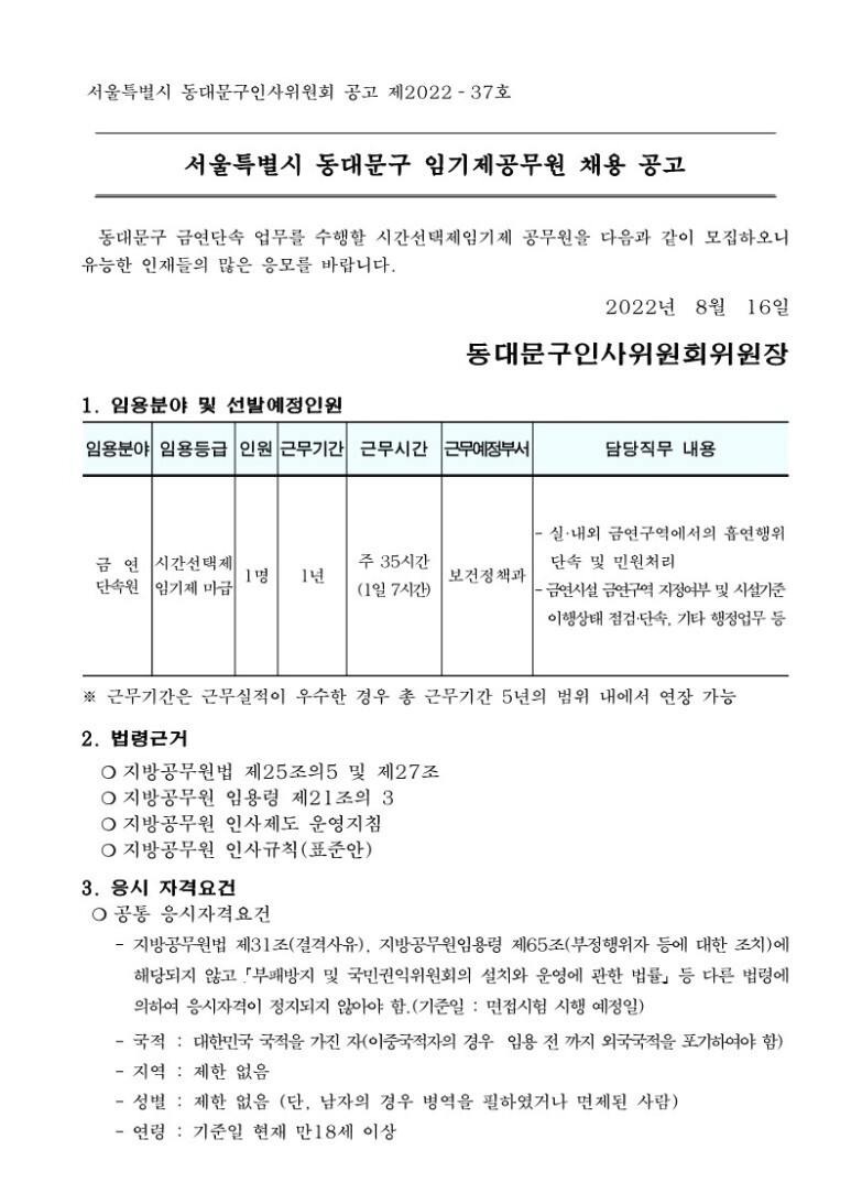 | [서울특별시 동대문구 임기제공무원 채용 공고] (2) | 2022.08.16 |